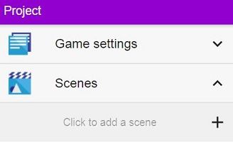 • On the Project panel on the left, click + to add a scene.
